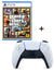 El Combo promoción incluye 1 Control DualSense Americano White + 1 Videojuego físico Grand Theft Auto Five para consola PS5.